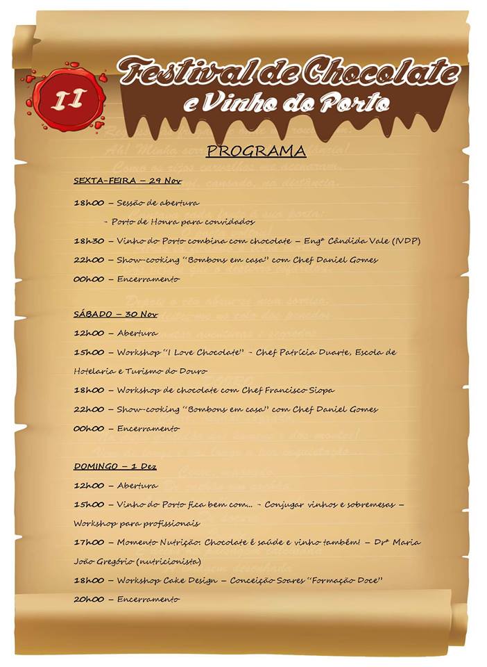 Consulte aqui o programa do II Festival de Chocolate e Vinho do Porto